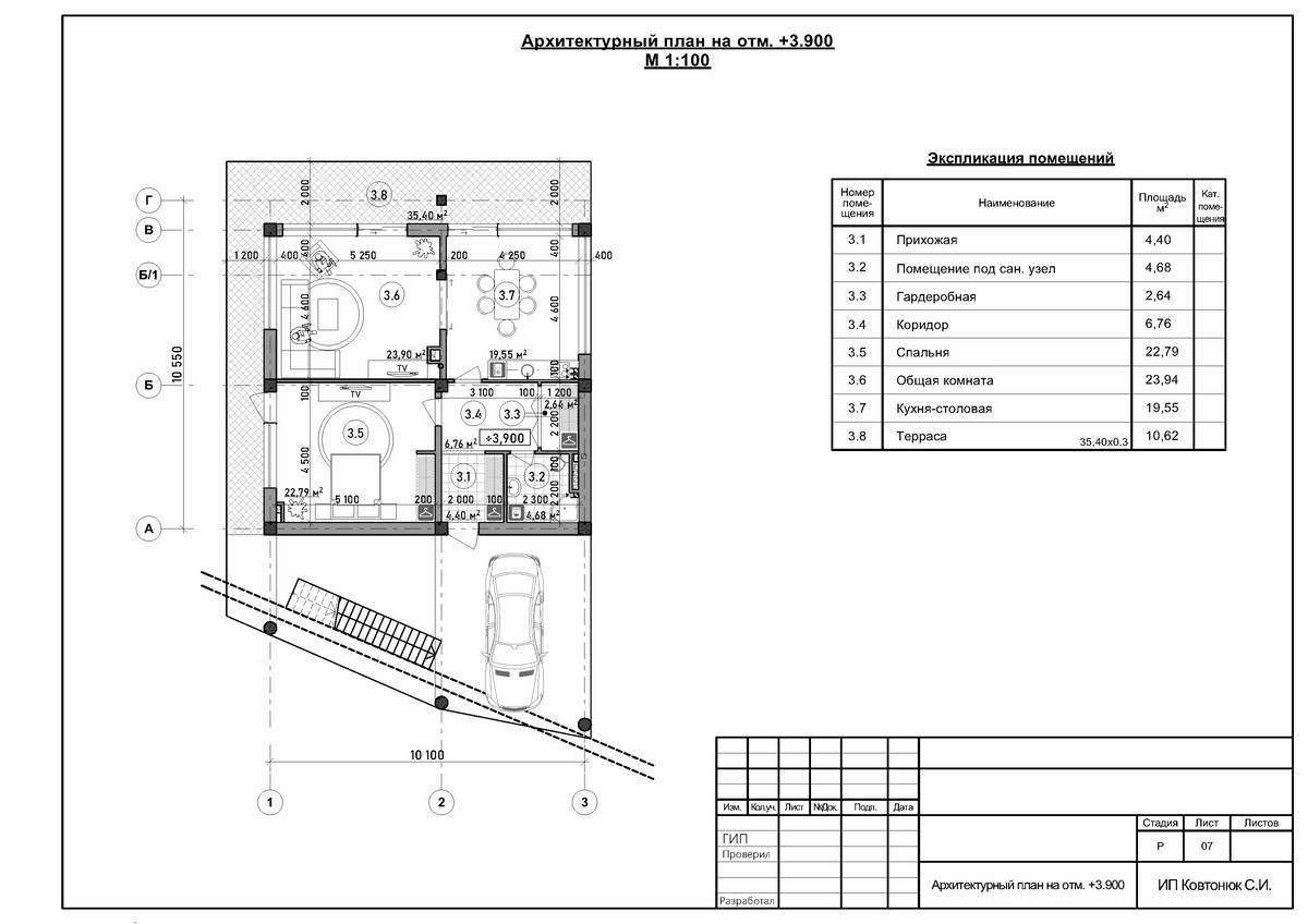 Проектная группа Симферополя ИНстрой представляет проект трехэтажного жилого дома, в современном стиле хай-тек с плоской крышей, 11 на 10 для строительства в с. Изобильное, ул. Судакская, г. Алушта. Рамный монолитный каркас и несущие наружные стены из газобетона. Перегородки - газобетонные блоки, монолитные перекрытия, монолитная фундаментная плита. Кровля - плоская, ПВХ мембрана. Рассчитан на сейсмичность 8 баллов.