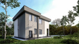 Проектная группа Симферополя ИНстрой представляет проект двухэтажного жилого дома, в современном стиле хай-тек с плоской крышей, 11 на 12 м., 192 м2 для строительства в Симферопольском р-не, п. Айкаван, ул. Андраника. Каркасно-каменный монолитный каркас. Несущие наружные стены из известняка-ракушечника. Перегородки - газобетонные блоки, монолитные перекрытия, монолитные ленточные фундаменты. Кровля - плоская, ПВХ мембрана. Рассчитан на сейсмичность 7 баллов.