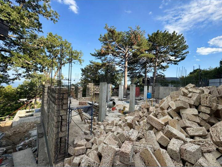 Компания Симферополя ИНстрой представляет проект двухэтажного дома, в средиземноморском стиле, размером 16 на 22 м, 280 м2. для строительства в г. Ялта, пгт. Ливадия, п. Горное. Каркасно-каменный монолитный каркас. Несущие наружные стены из известняка-ракушечника. Перегородки - газобетонные блоки, монолитная фундаментная плита. Кровля - керамическая черепица. Рассчитан на сейсмичность 8 баллов.