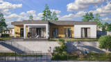 Проектная группа Симферополя ИНстрой представляет проект одноэтажного жилого дома, в современном стиле минимализм с плоской крышей, 23 на 17 для строительства в Симферопольском р-не, Перовский с/с, ОК СТ "Надежда", ул. Залесенская. Каркасно-каменный монолитный каркас. Несущие наружные стены из известняка-ракушечника. Перегородки - газобетонные блоки, монолитные перекрытия, монолитные ленточные фундаменты. Кровля - плоская, ПВХ мембрана. Рассчитан на сейсмичность 8 баллов.