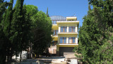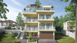 Компания Симферополя ИНстрой представляет проект трёхэтажного дома площадью 275 м2 в современном стиле минимализм с плоской крышей и переливным бассейном на кровле дома, для строительства в Алуште, мкр. Дельфин. Рамный монолитный каркас, с сомонесущими наружными стененами из газобетона 400мм.. Перегородки - газобетонные блоки, монолитные перекрытия, монолитная фундаментная плита. Кровля - плоская. Рассчитан на сейсмичность 8 баллов.