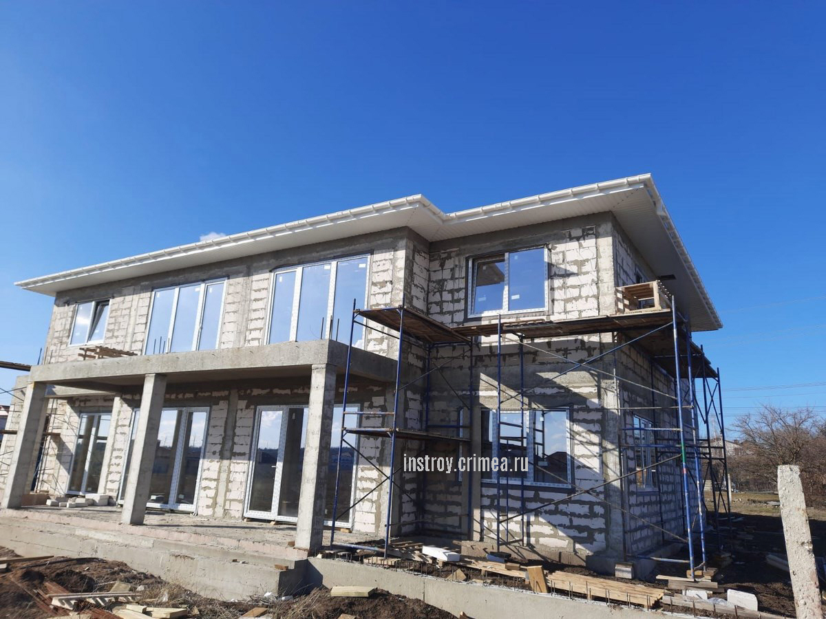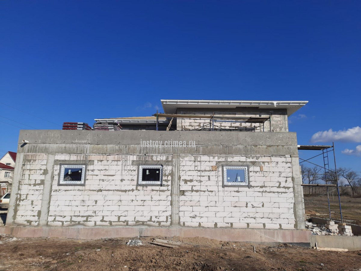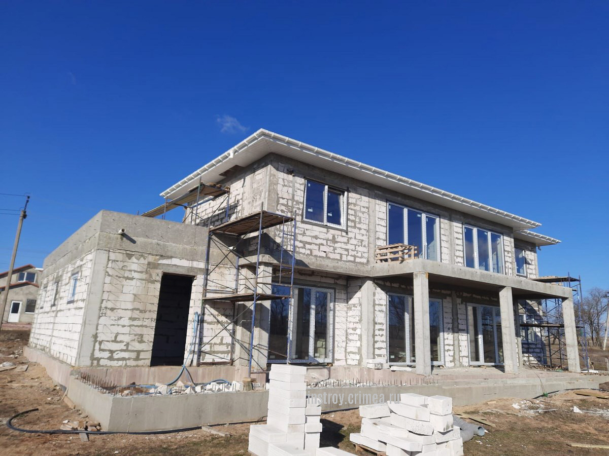 Проектная группа Симферополя ИНстрой представляет проект двухэтажного жилого дома 21 на 15 для строительства в г. Симферополь, мкр. Белое-5, ул.Горная. Рамный монолитный каркас и несущие наружные стены из газобетона. Перегородки - газобетонные блоки, монолитные перекрытия, монолитные ленточные фундаменты. Кровля - битумная черепица. Рассчитан на сейсмичность 7 баллов.