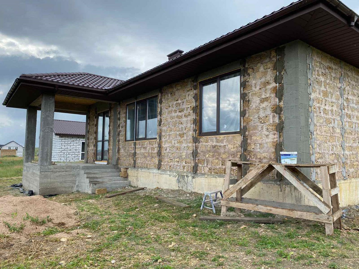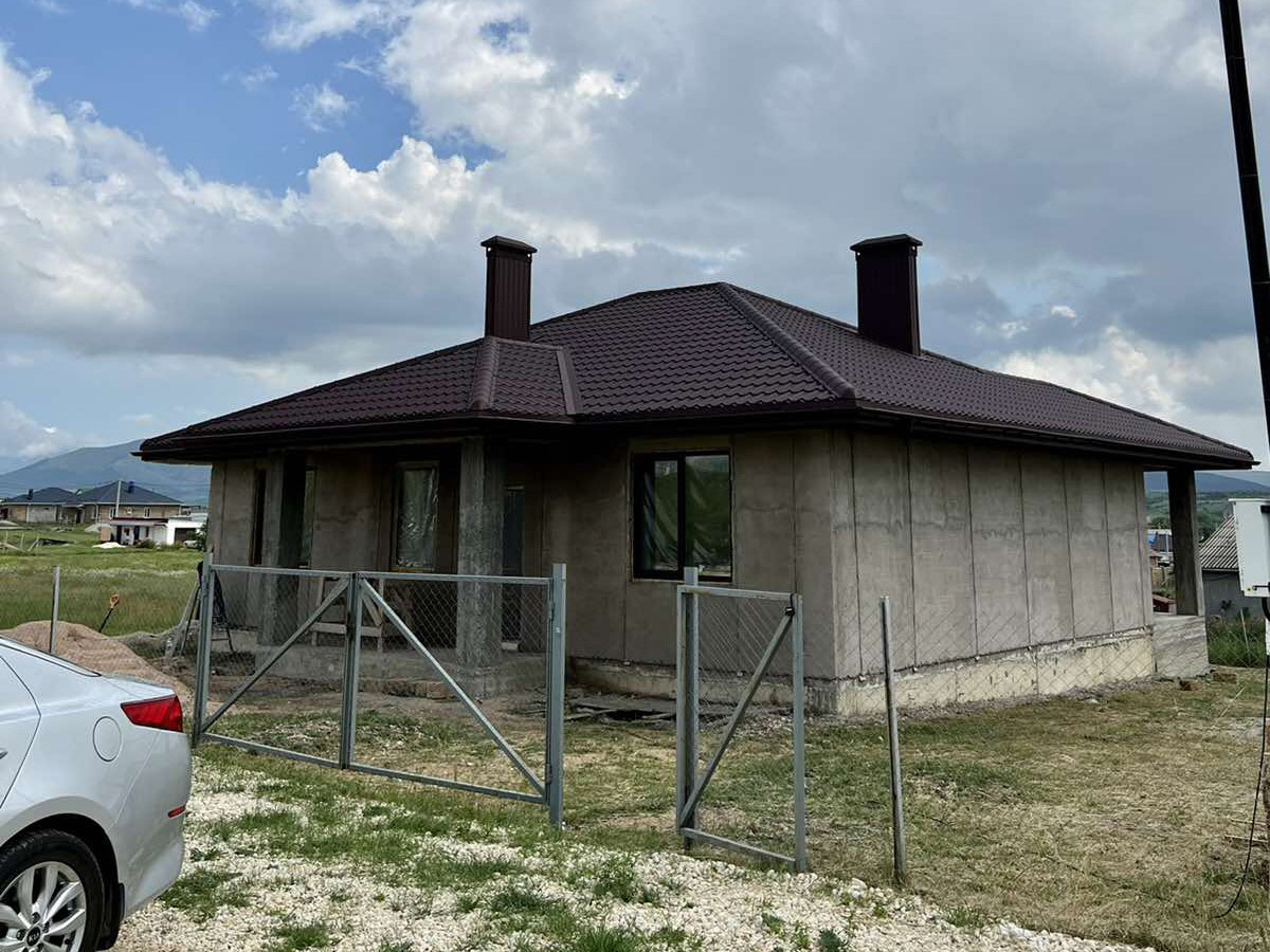 Компания Симферополя ИНстрой представляет проект одноэтажного дома 17 на 13 м, 140 м2. для строительства в с. Доброе, ул. Октябрьская, Симферопольский район. Каркасно-каменный монолитный каркас. Несущие наружные стены из известняка-ракушечника. Перегородки - газобетонные блоки, ленточный монолитный фундамент. Кровля - керамическая черепица. Рассчитан на сейсмичность 8 баллов.