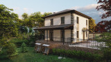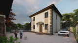 Компания Симферополя ИНстрой представляет проект двухэтажного дома 10 на 10 м, 136 м2. для строительства в с. Мирное, ул. Прохладная, Симферопольский район. Каркасно-каменный монолитный каркас. Несущие наружные стены из известняка-ракушечника. Перегородки - газобетонные блоки, монолитные перекрытия, ленточный монолитный фундамент. Кровля - металлочерепица. Рассчитан на сейсмичность 8 баллов.