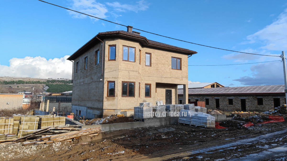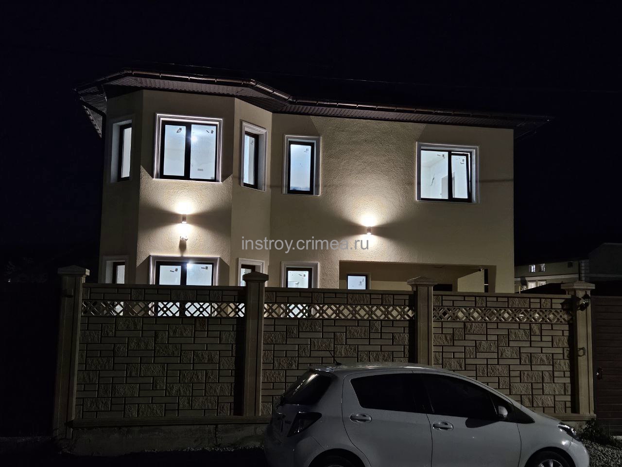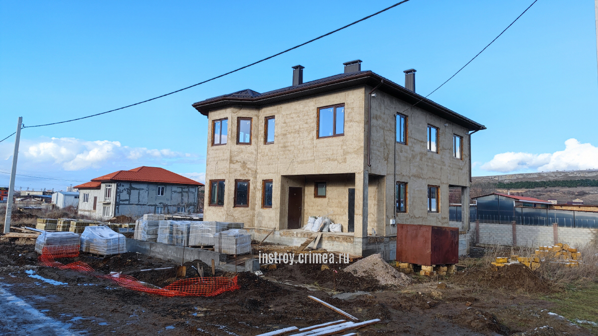 Компания Симферополя ИНстрой представляет проект двухэтажного дома 13 на 10 м, 190 м2. для строительства в г. Симферополь, мкр. Луговое 2. Каркасно-каменный монолитный каркас. Несущие наружные стены из известняка-ракушечника. Перегородки - газобетонные блоки, монолитные перекрытия, ленточный монолитный фундамент. Кровля - металлочерепица. Рассчитан на сейсмичность 7 баллов.