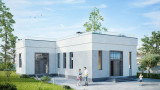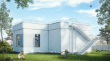 Компания Симферополя ИНстрой представляет проект одноэтажного дома с плоской крышей 20 на 18 м, 183 м2. для строительства в с. Пожарское, Симферопольский район. Каркасно-каменный монолитный каркас. Несущие наружные стены из известняка-ракушечника. Перегородки - газобетонные блоки, ленточный монолитный фундамент. Кровля - ПВХ мембрана. Рассчитан на сейсмичность 7 баллов.